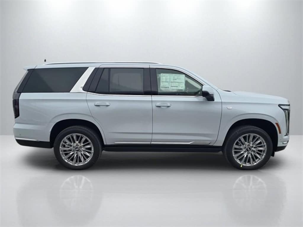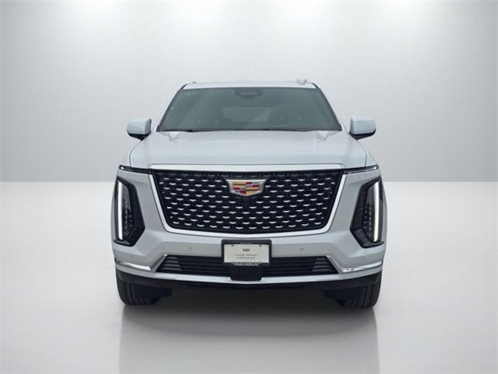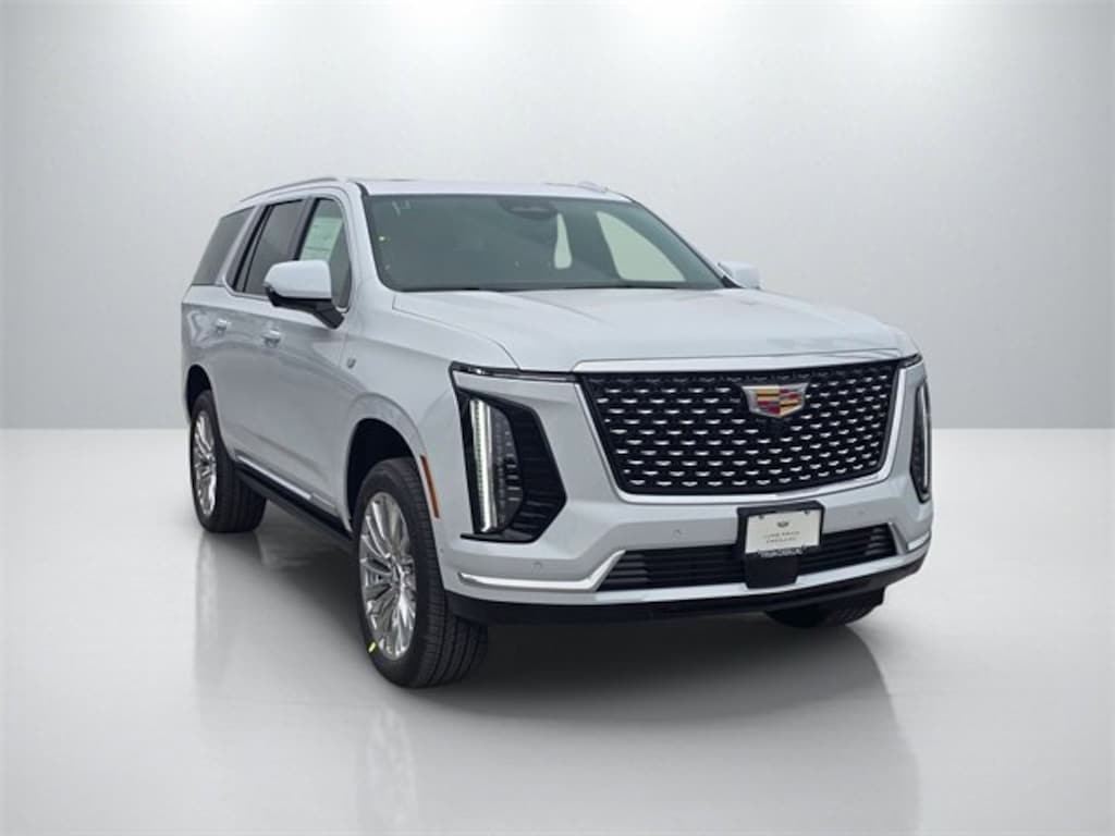 Vibrant White Tricoat 2026 Cadillac Escalade Luxury RWD 10-Speed Automatic with Overdrive 6.2L V8 Renaissance Red/Jet Black Leather.