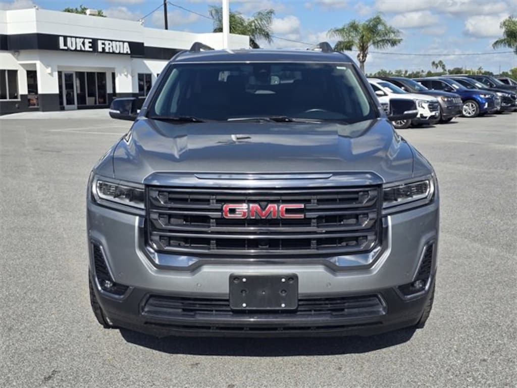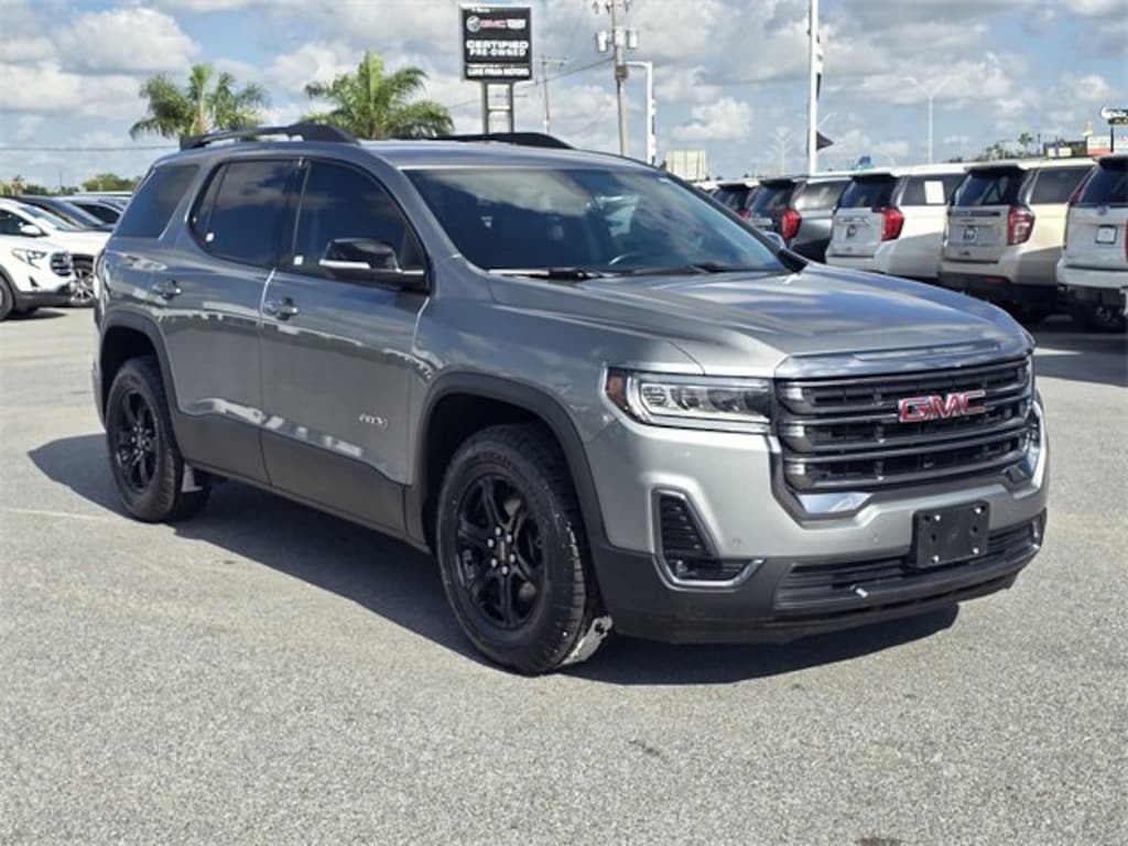 CARFAX One-Owner. Clean CARFAX. Sterling Metallic 2023 GMC Acadia AT4 AWD 9-Speed Automatic 3.6L V6 SIDI AWD, Jet Black Leather.