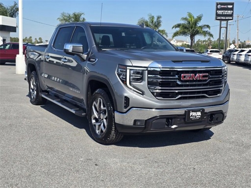 CARFAX One-Owner. Sterling Metallic 2023 GMC Sierra 1500 SLT 4WD 10-Speed Automatic EcoTec3 5.3L V8 10-Speed Automatic, 4WD, Jet Black Leather.