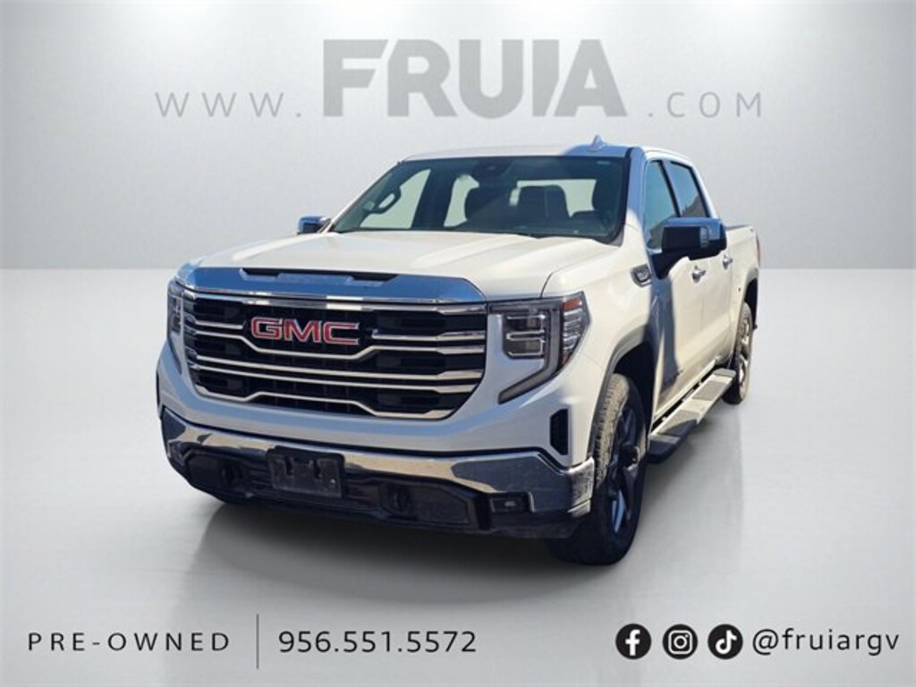CARFAX One-Owner. Clean CARFAX. Summit White 2023 GMC Sierra 1500 SLT 4WD 10-Speed Automatic EcoTec3 5.3L V8 10-Speed Automatic, 4WD, Jet Black Leather.