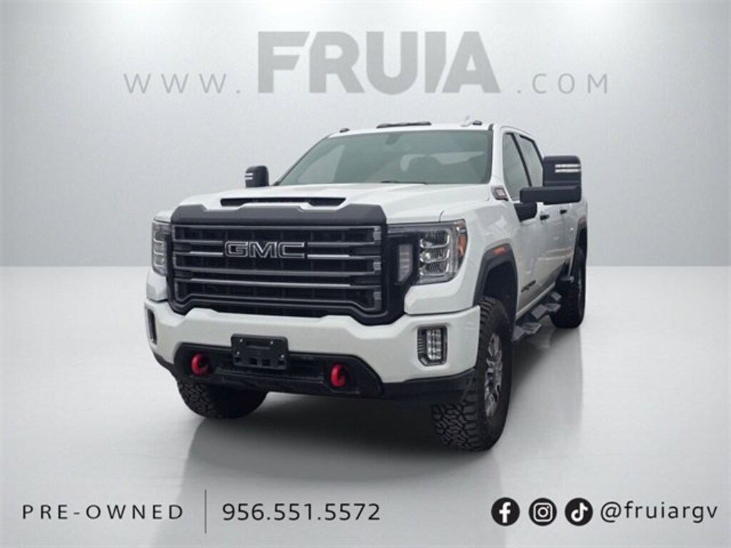 Clean CARFAX. Summit White 2023 GMC Sierra 2500HD AT4 4WD 10-Speed Automatic Duramax 6.6L V8 Turbodiesel 10-Speed Automatic, 4WD, Jet Black With Kalahari Accents Leather.