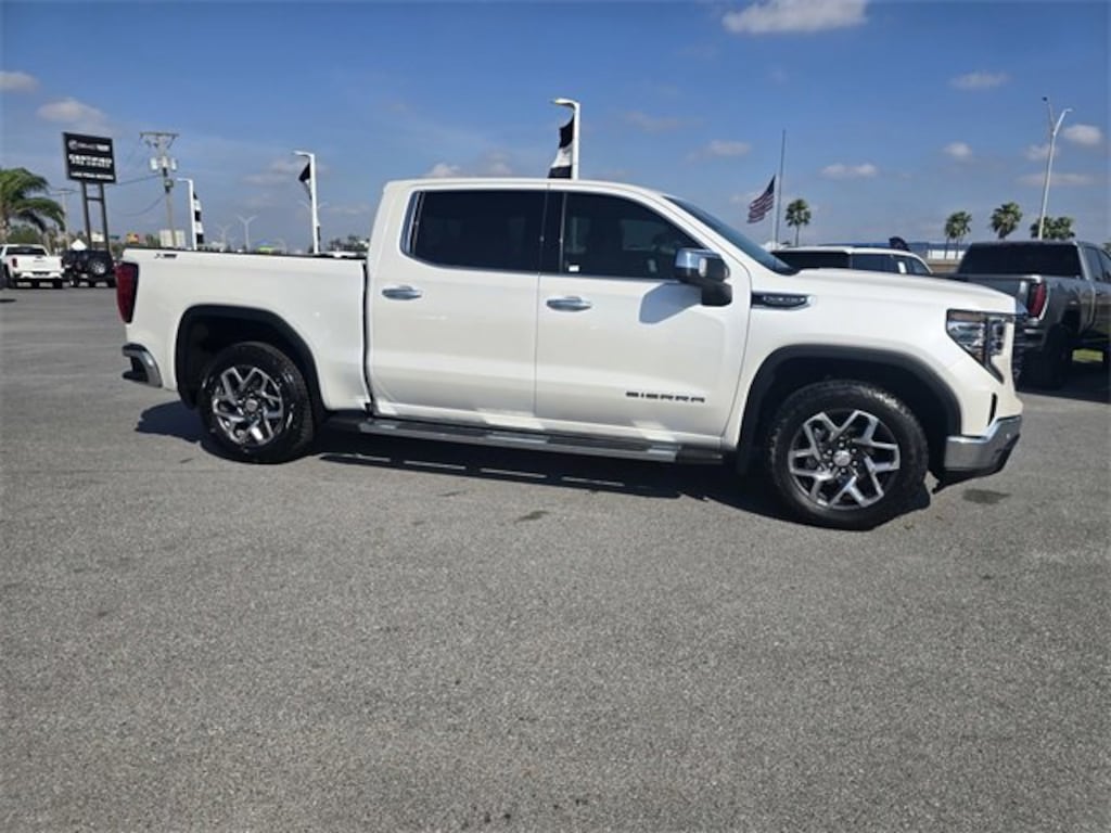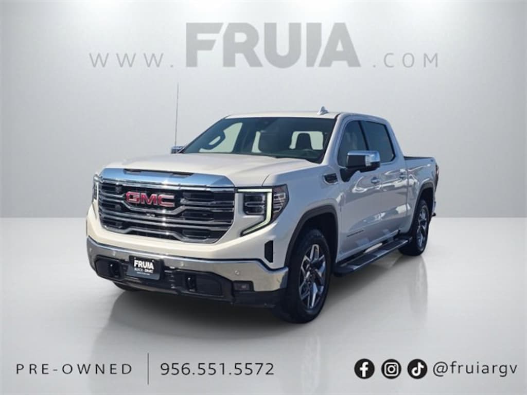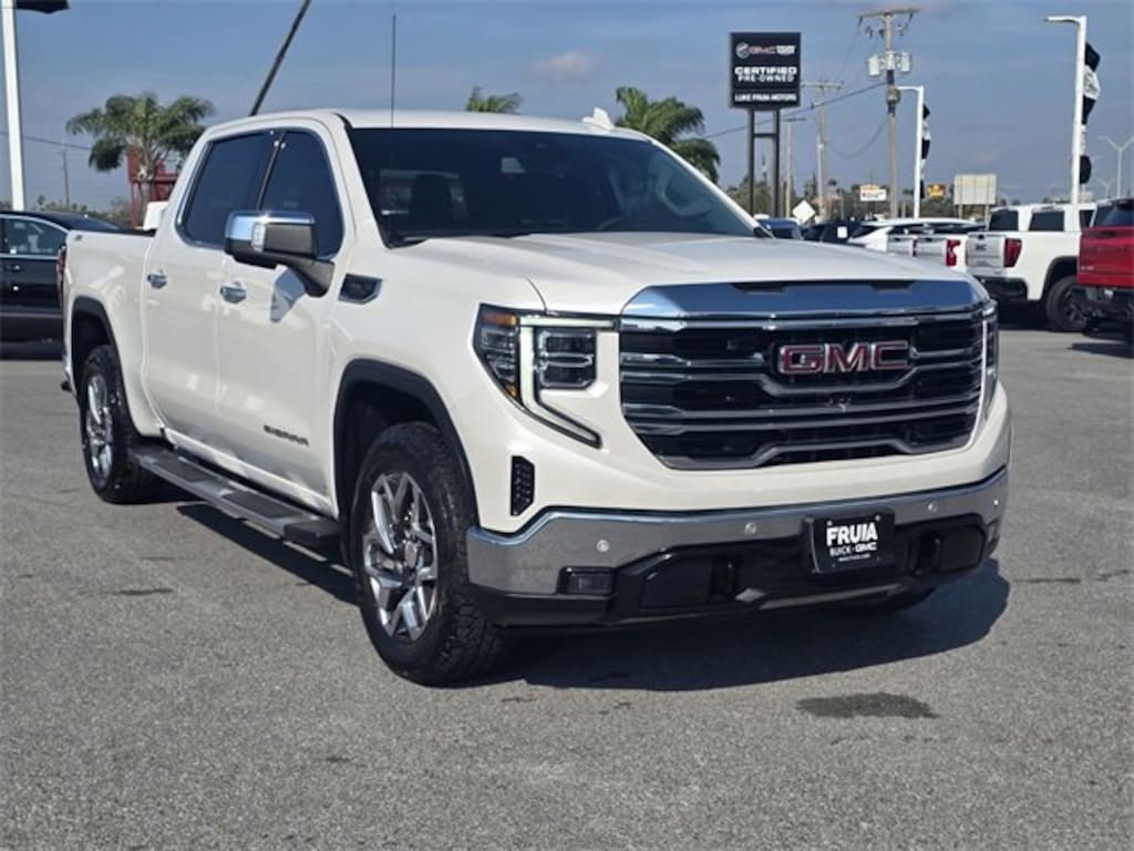 CARFAX One-Owner. Clean CARFAX. White Frost Tricoat 2024 GMC Sierra 1500 SLT 4WD 10-Speed Automatic EcoTec3 5.3L V8 10-Speed Automatic, 4WD, Jet Black Leather.